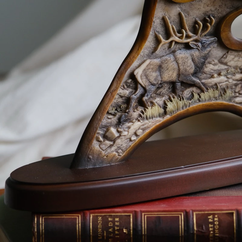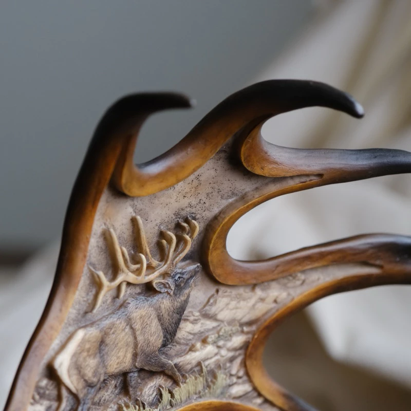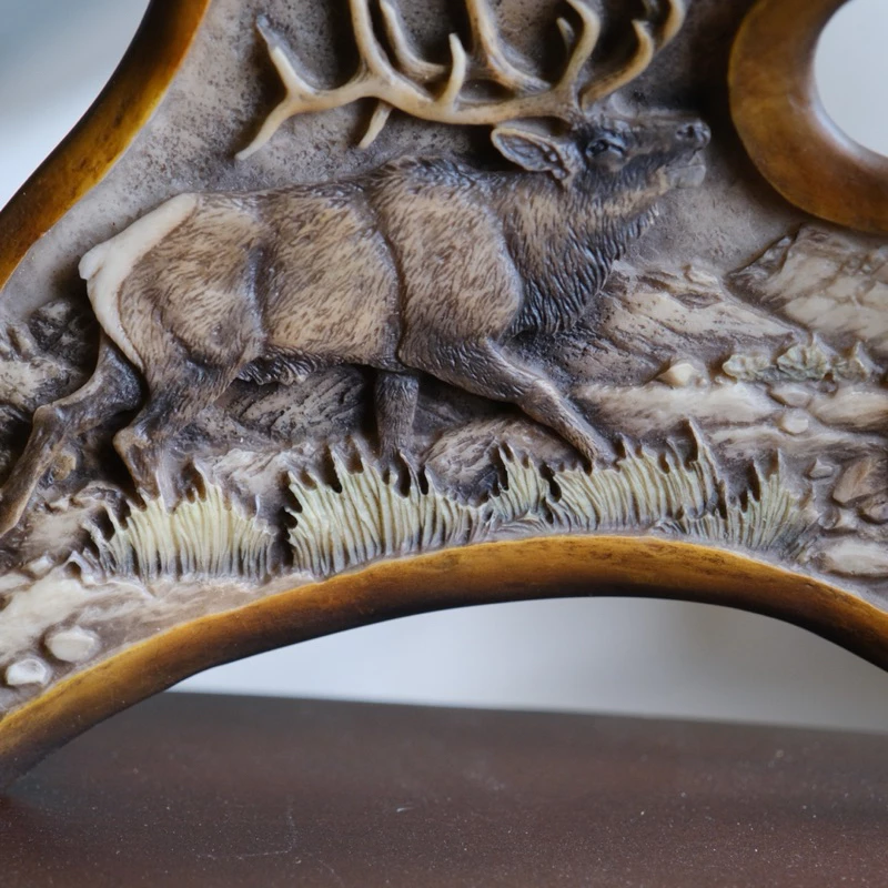 • การแกะสลักที่ละเอียดอ่อนแสดงภาพกวางในธรรมชาติ
