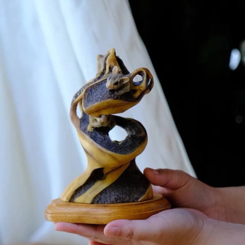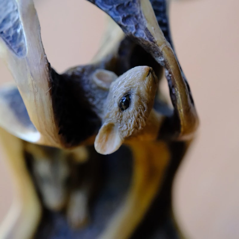 ประติมากรรมนี้แสดงให้เห็นถึงจินตนาการอันน่าทึ่งของผู้สร้าง โดยนำเสนอเหล่าหนู 3 ตัวพันกันเป็นรูปทรงคดเคี้ยว เจ้าหนูถูกสร้างขึ้นอย่างสมจริง สามารถสังเกตเห็นรายละเอียดผิวจำลองแบบไม้ สีหน้าแสดงอารมณ์ และท่าทางธรรมชาติได้อย่างชัดเจน