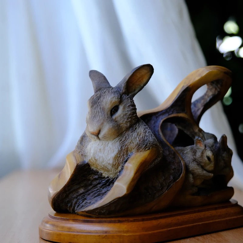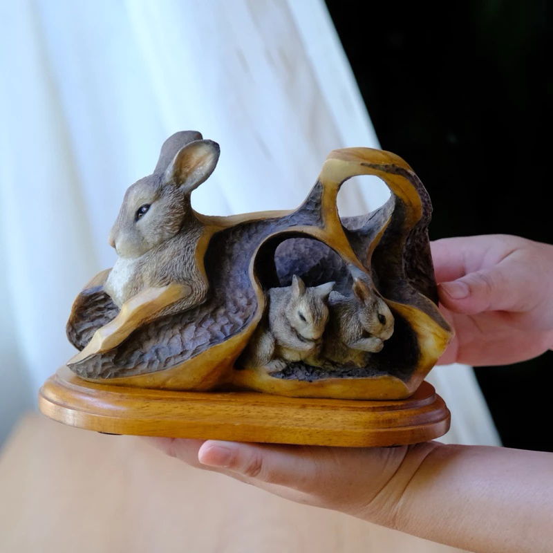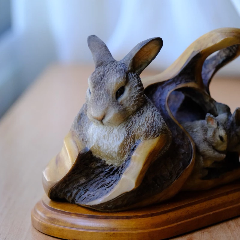 งานศิลปะปั้นรูปครอบครัวกระต่ายแสนน่ารัก จากศิลปิน Hajny เอกลักษณ์เฉพาะตัว วัสดุเรซิ่น
