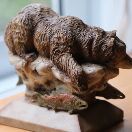 รูปหล่อปฏิมากรรม หมีกริซลี่ รอพักบนขอนไม้ ด้านช่างมีปลาแซลมอน งานน่ารักเท่ๆปีเก่า ปี 2004 ฿1,300