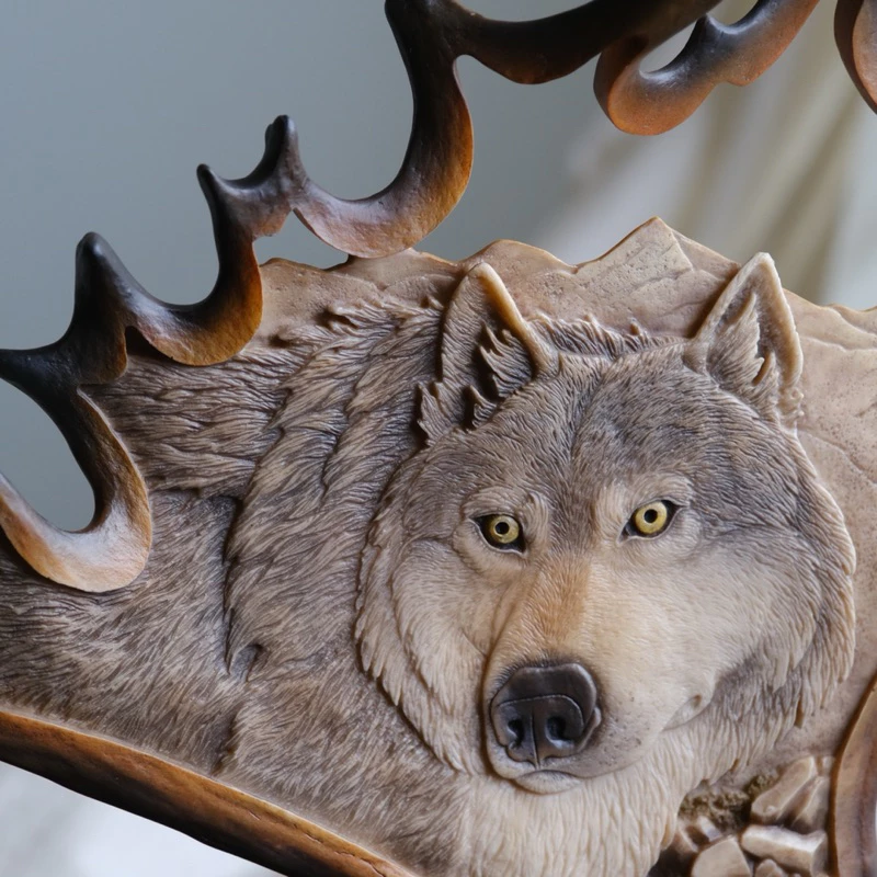 งานแกะสลักเขากวางมูสโดย แลนซ์ โดโมโนสกี้ ปี 1995 หมาป่าเดียวดาย