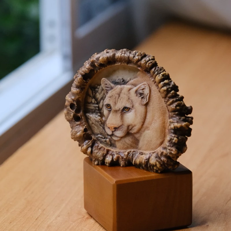 สัมผัสความสง่างามของ คูการ์ (เสือภูเขา) ผ่านงานประติมากรรมสุดวิจิตรจาก Mill Creek Studios ชิ้นนี้ ตัวรูปปั้นตั้งอยู่บนฐานไม้ เพิ่มความหรูหราและโดดเด่นให้กับคอลเลกชันของคุณ
