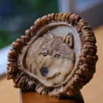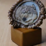 งานแกะสลักเขากวางมูสโดย แลนซ์ โดโมโนสกี้ ปี 1995 หมาป่าเดียวดาย