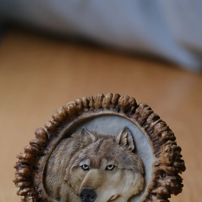 รูปปั้นหมาป่าสีเทา Mill Creek Studios บนฐานไม้ งานศิลป์สุดประณีตจาก USA