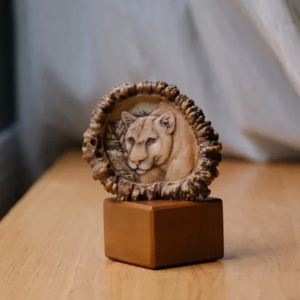 รูปปั้นคูการ์บนฐานไม้ Mill Creek Studios (2002) – งานศิลป์สุดประณีต พร้อมลายเซ็นศิลปิน ฿1,200