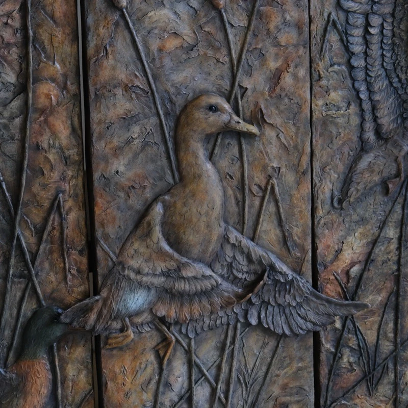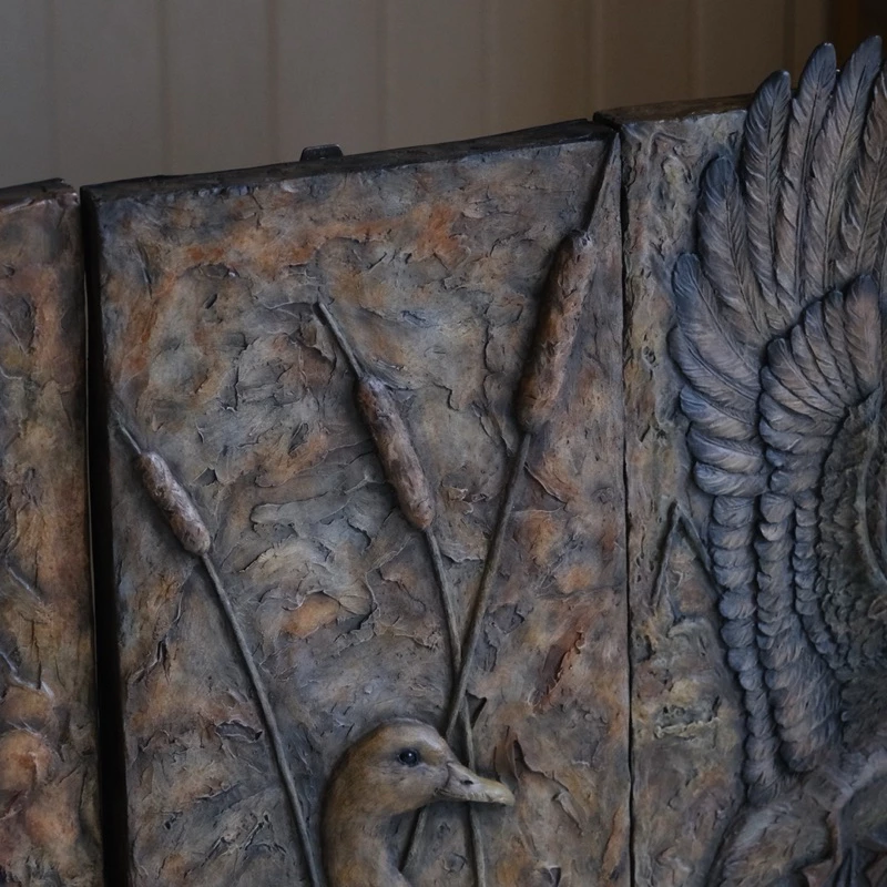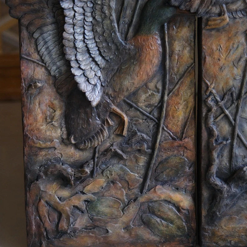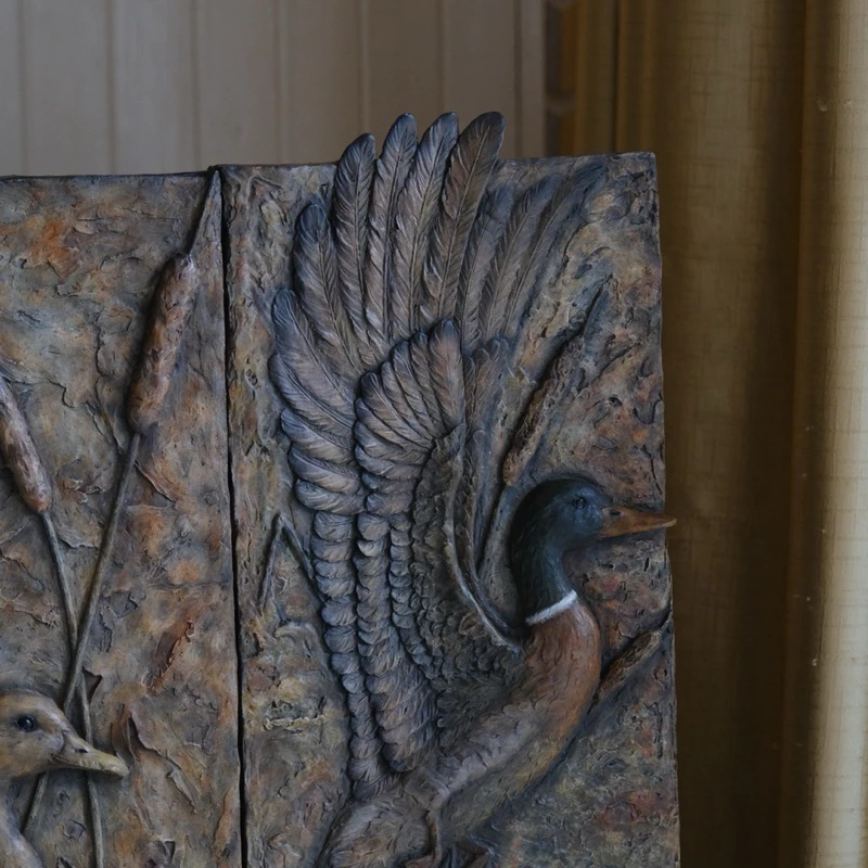 รูปหล่อเรซิ่นติดผนังวินเทจเก่า จาก Mill Creek Studio งานรูปเป็น Mallard ฉากแบบ 3 ชิ้นประกบกัน 3 แบบในเรื่องราวเดียว ฝีมือการปั้นออกแบบสวยงามพร้อมแขวนตกแต่ง พร้อมปั๊มเหรียญประกันคุณภาพ ปี 2010 ถือว่าเป็นงานเก่าที่น่าสะสม