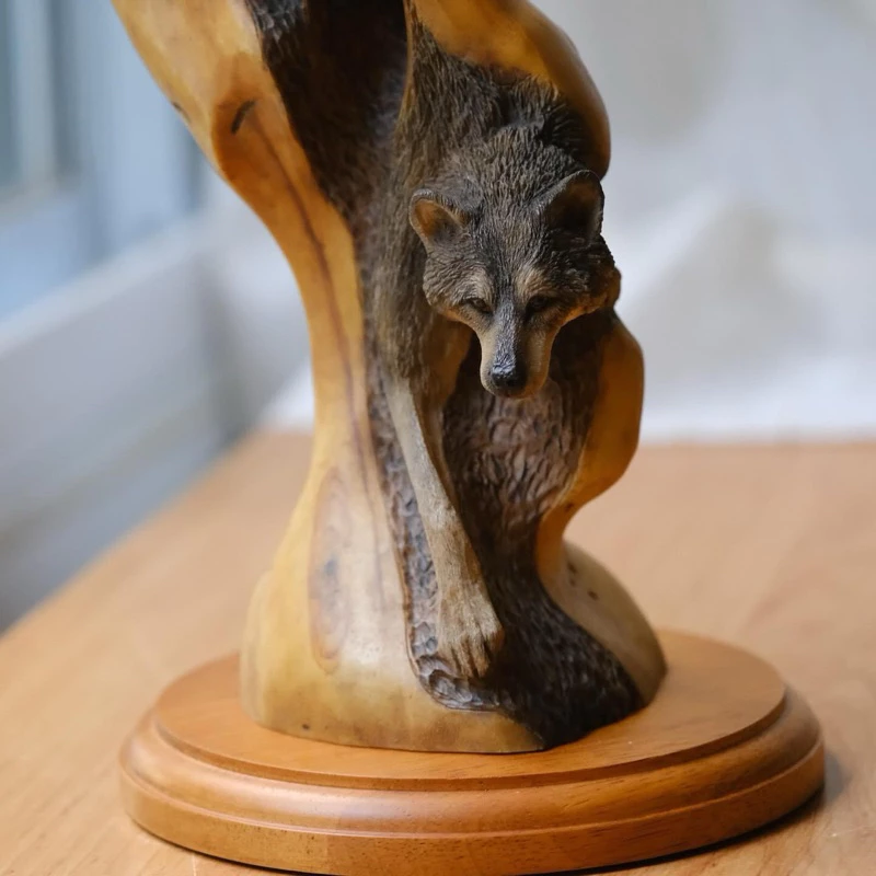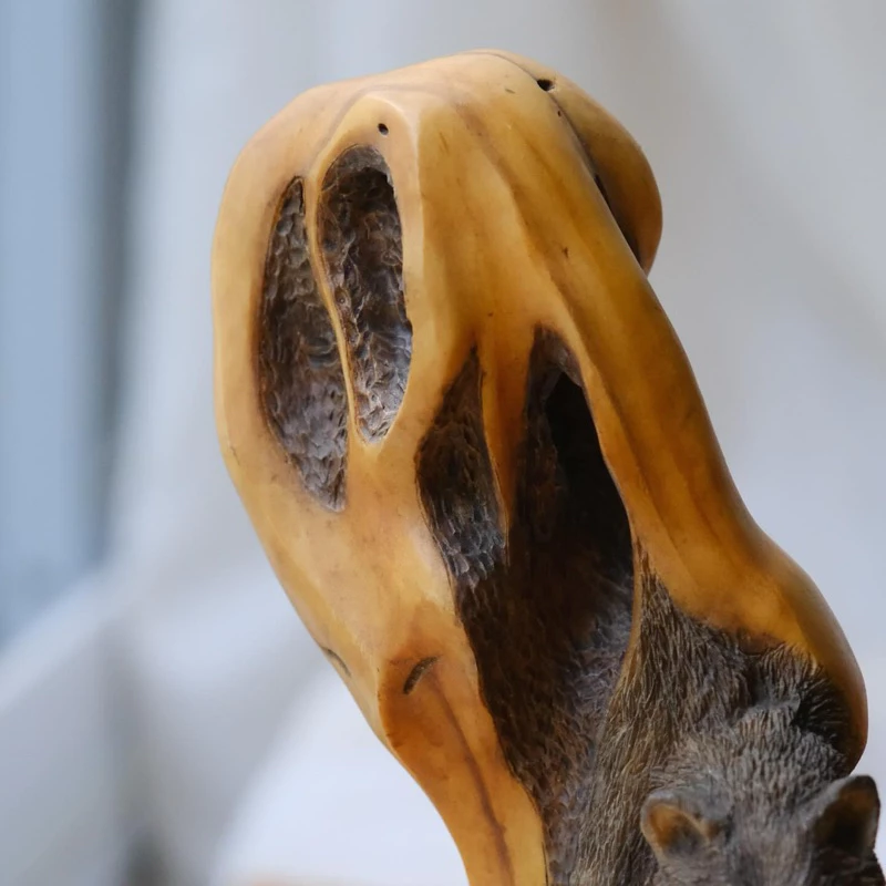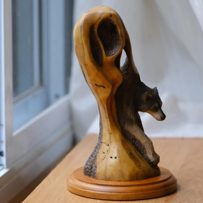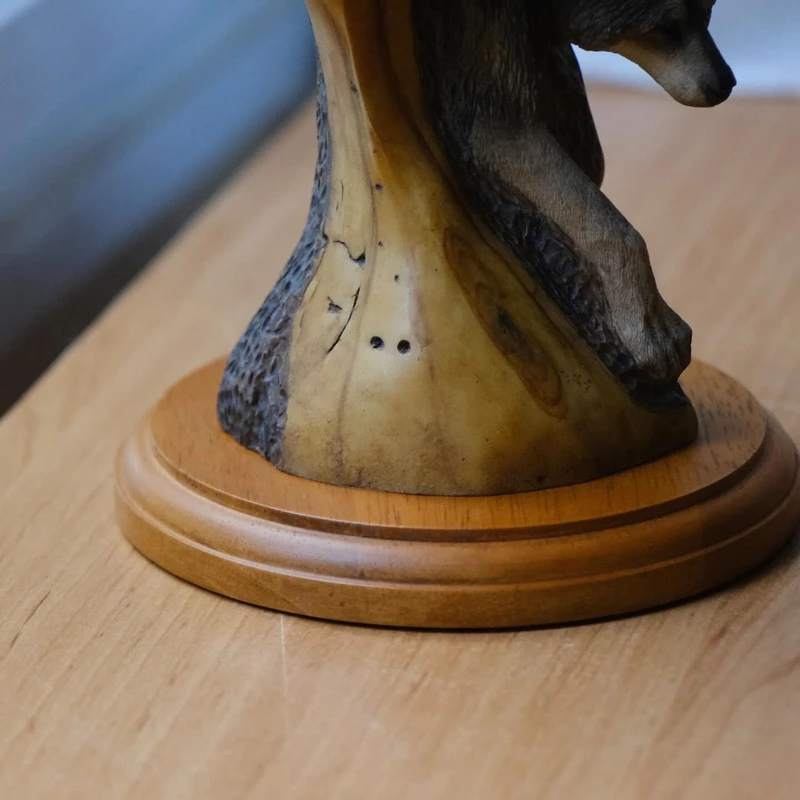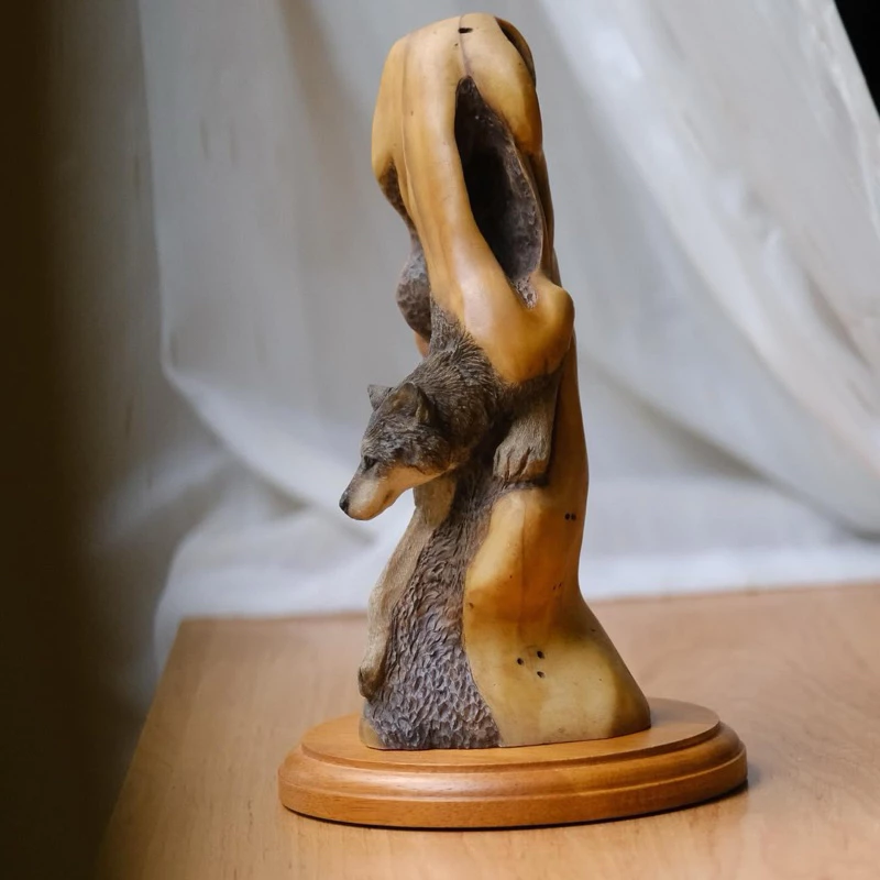 หมาป่าจำลองแบบเหมือนแกะสลักจากไม้ โดย Mill Creek Studios ผลงานต้นฉบับ ลงนามโดยศิลปิน HAJNY