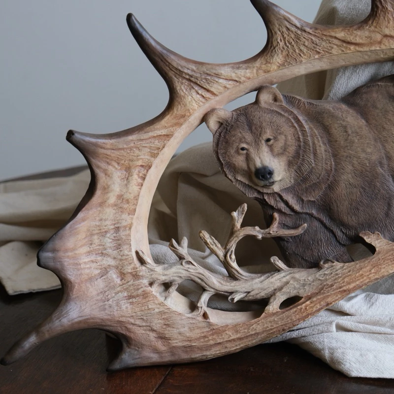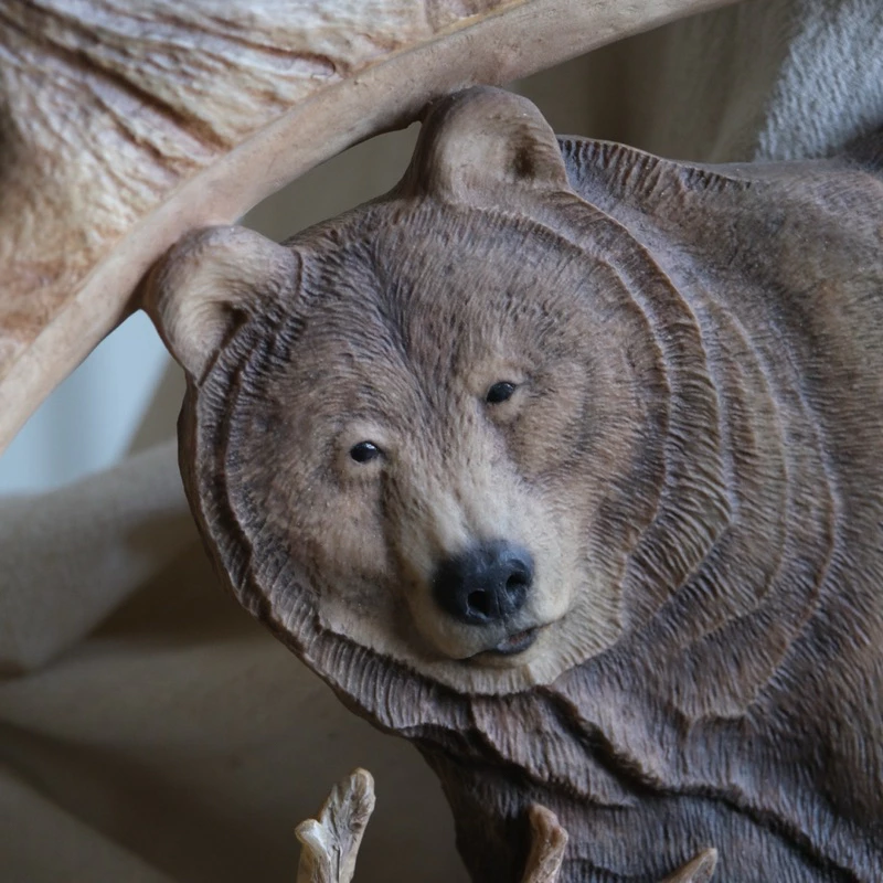 เขากวางมูส ติดผนังแกะสลักรูปหมี หมีกริซลี่