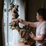 หน้าหลัก รูปปั้น รูปหล่อเหล่าหมี กรีซลี่ เล่นอยู่ในน้ำตก 3 ชั้น งานของ Mill Creek Studio
