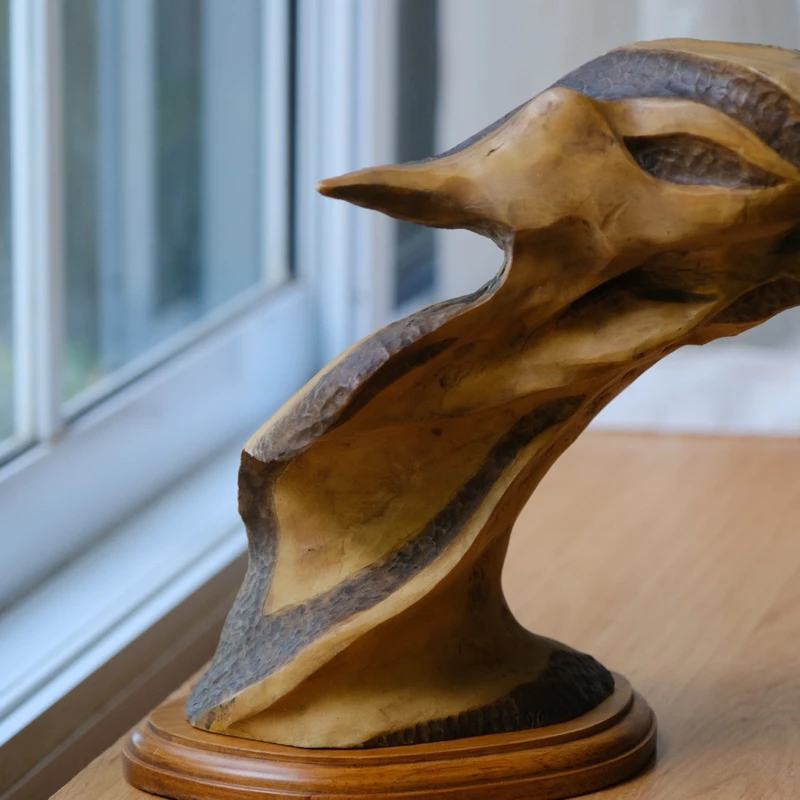 งานแกะสลักเขากวางมูสโดย แลนซ์ โดโมโนสกี้ ปี 1995 หมาป่าเดียวดาย