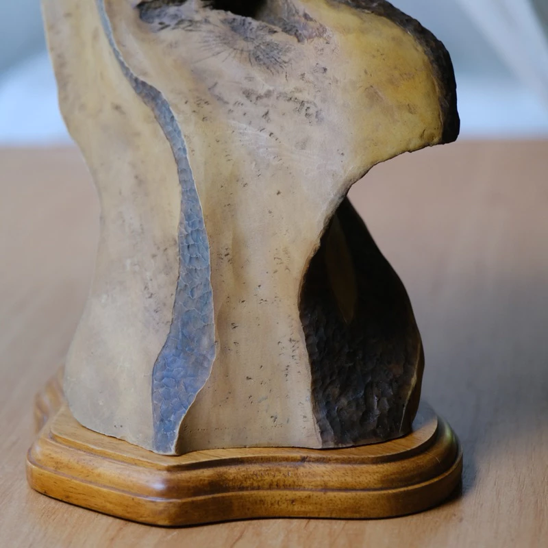ฐานไม้ทรงโค้งมนช่วยเพิ่มความสง่างามให้กับชิ้นงาน