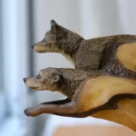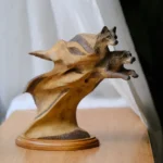 “Outbound” โดย Desiree Hajny เป็นรูปปั้นหมาป่าสองตัวที่กำลังวิ่งอย่างทรงพลัง สร้างสรรค์ขึ้นจากเรซิ่นคุณภาพสูง