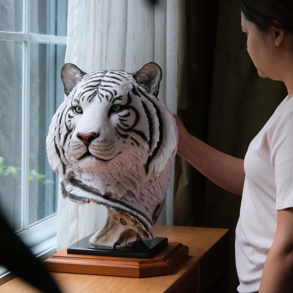 🐅 ด้วยความมุ่งมั่นที่ต้องการได้งานที่สมบูรณ์แบบ จึงถ่ายทอด จิตวิญญาณ ของราชาเสือขาวไซบีเรีย อันสง่างามจนไม่อาจละสายตา โดยฝีมืองานปั้น Jone Slockbower ศิลปินชาวอเมริกา ผู้มีประสบการณ์ โดยชื่อผลงาน Siberian King งานเป็นแบบ Limited Edition ผลิตแค่ 1500 ชิ้น ปั้นในช่วงปี 2000 จัดทำโดย Mill Creek Studio งานมีแค่ 2 สี ขาว งานจะเป็นการหล่อเรซิ่น และ เขียนสีด้วย มือทุกขั้นตอน ถือว่าเป็นงาน handcraft ทั้งชิ้น จึงถือว่าเป็นงานเก่าสะสมหายากที่ไม่ค่อยเจอมากนักเหมาะสำหรับนักสะสม หรือ มอบเป็นของขวัญ เสริมบารมีตามหลักฮวงจุ้ย