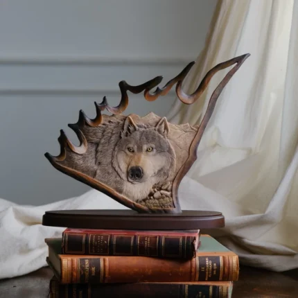 งานแกะสลักเขากวางมูสโดย แลนซ์ โดโมโนสกี้ ปี 1995 หมาป่าเดียวดาย