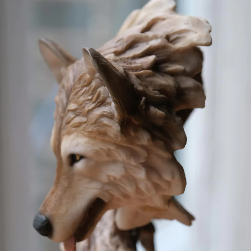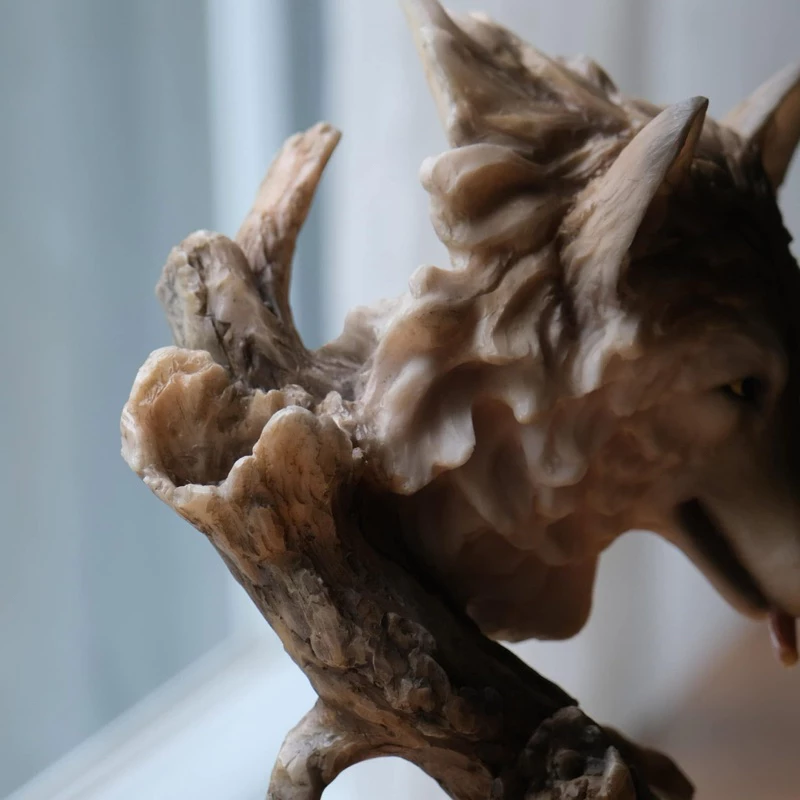 รังสรรค์อย่างประณีตด้วยวัสดุเรซิ่นคุณภาพสูง ถ่ายทอดรายละเอียดของหมาป่าได้อย่างมีชีวิตชีวา ตั้งแต่เส้นขนที่พลิ้วไหว ดวงตาที่แสดงถึงความดุดัน จนถึงท่วงท่าที่ดูทรงพลัง